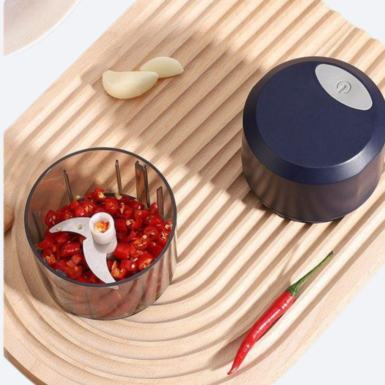 Efficiently chop garlic and other ingredients with this multifunctional electric beater. Compact design, easy to clean, suitable for various kitchen tasks.