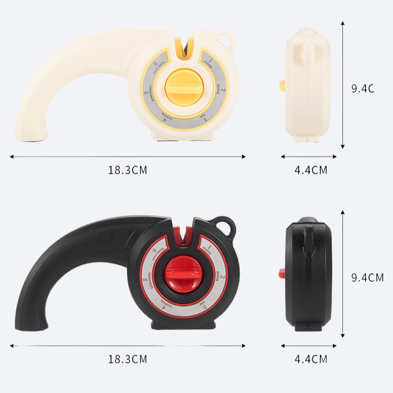 Suitable for all knife types, easy to use, compact design, durable construction, non-slip base, safe sharpening process, quick results, ideal for home kitchens.